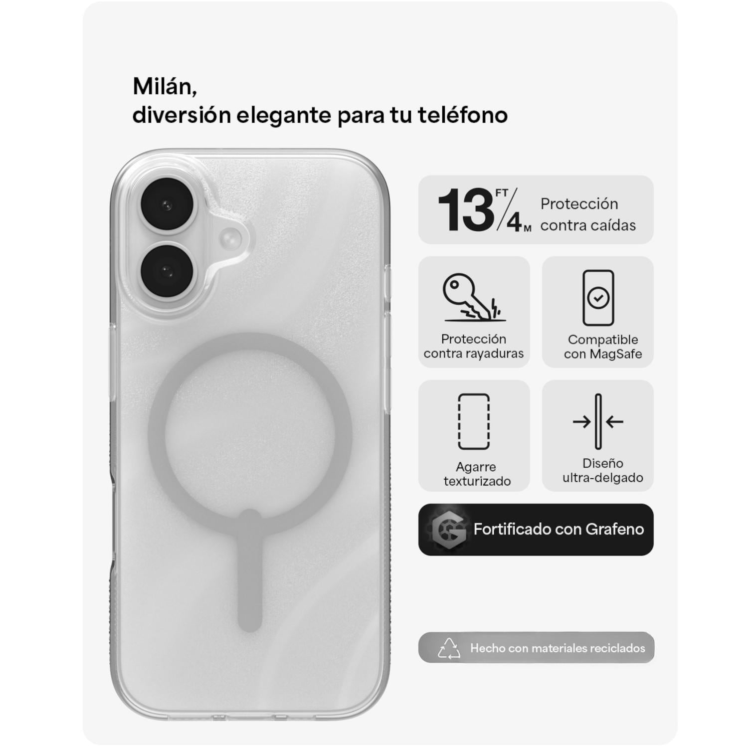 Cuenta con tecnología anti amarillamiento que mantiene la funda (y tu teléfono) impecables. Su diseño ligero y estilizado no añade peso innecesario. Y, por supuesto, es compatible con MagSafe.