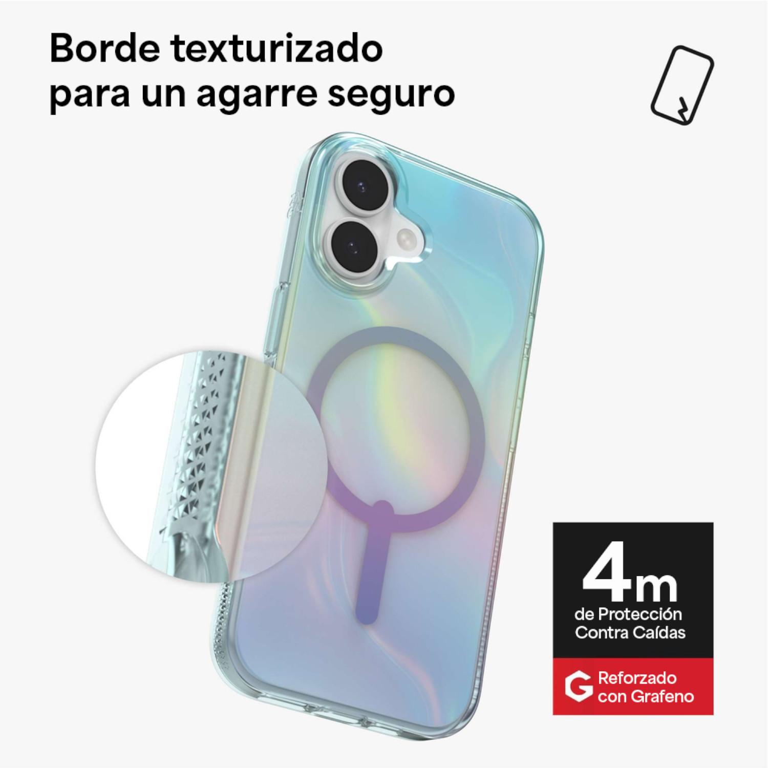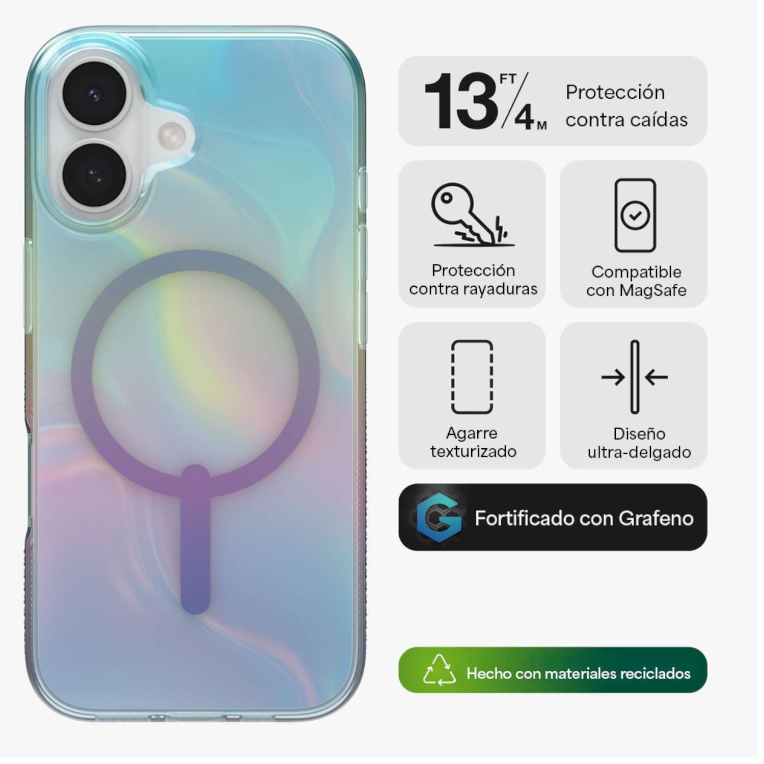 Inspirado en los intrincados tonos y formas de la naturaleza, el Milan Snap Burbuja Iridiscente combina con solidez el estilo urbano y la protección. Y es mucho más que una simple funda bonita. Milan Snap está diseñado para ser duradero y protege tu teléfono de caídas de hasta 4 metros de altura.