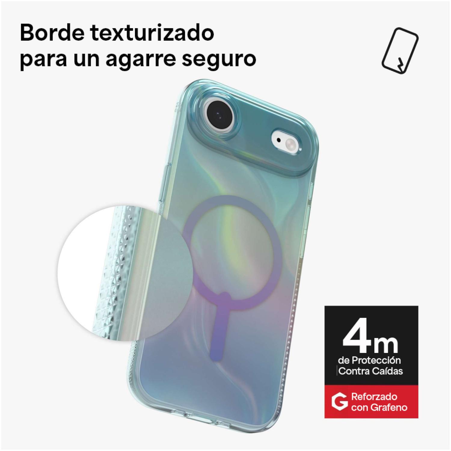 Inspirado en los intrincados tonos y formas de la naturaleza, el Milan Snap Burbuja Iridiscente combina con solidez el estilo urbano y la protección. Y es mucho más que una simple funda bonita. Milan Snap está diseñado para ser duradero y protege tu teléfono de caídas de hasta 4 metros de altura.