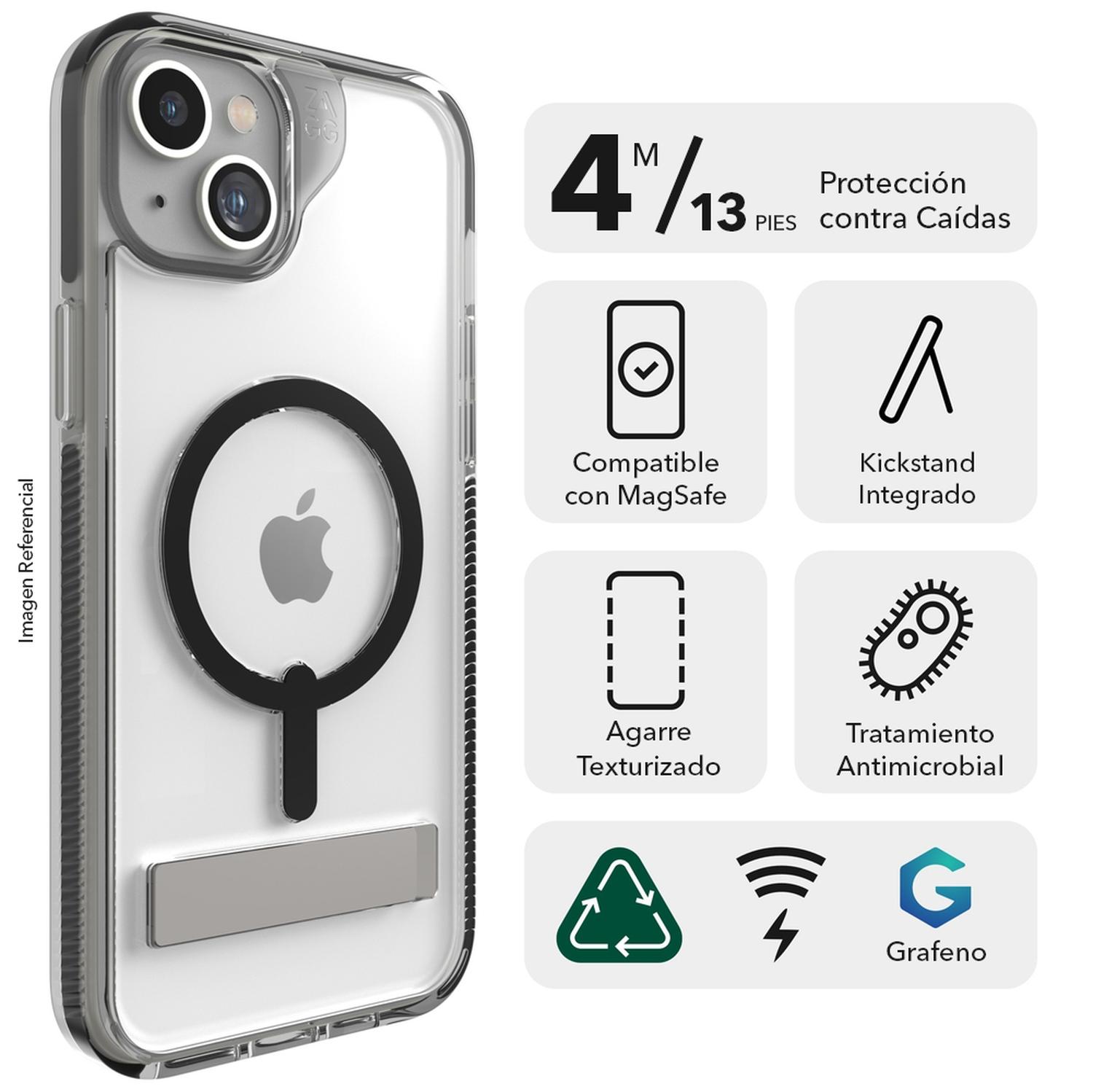 Durante años, Crystal Palace ha sido la favorita de los usuarios de celulares gracias a la combinación de una increíble protección contra caídas y un diseño elegante. Y ahora la nueva Crystal Palace Snap con Kickstand está reforzado con grafeno, uno de los materiales más resistentes de la tierra. Es delgada, flexible y protege contra el calor, lo que la convierte en una protección insuperable. Pero eso no es todo. Esta funda compatible con MagSafe tiene un soporte integrado que puedes plegar en la funda cuando no lo usas. Resistente contra Caídas de Hasta 4 m: ha sido testeada y probada para proteger tu teléfono de caídas de hasta 4 metros . Reforzada con Grafeno: el grafeno es más duro que un diamante, pero más elástico que el caucho, y hasta 200 veces más fuerte que el acero. Funda Transparente: tiene una superficie resistente a las rayaduras con tecnología anti-amarillamiento. Kickstand Integrado: el pie de apoyo te permite la visualización con manos libres y se pliega sobre la funda cuqndo no las estás usando. Compatible con MagSafe: Crystal Palace Snap con Kickstand es compatible con MagSafe y funciona con la mayoría de los cargadores inalámbricos compatibles con esta tecnología. 70% de Contenido Reciclado : Crystal Palace Snap con Kickstand contiene hasta un 70% de materiales reciclados post-consumo. Diseño de Bordes Redondeados: los bordes redondeados proporcionan un agarre seguro y cómodo. Tratamiento Antimicrobiano: contiene un agente antimicrobiano con propiedades intrínsecas que protegen tu funda al inhibir el crecimiento de bacterias que causan el mal olor . Diseño Delgado: el diseño delgado y liviano cabe fácilmente en tu bolsillo y cómodamente en tu mano. Mil Std 810G 516 El contenido de material reciclado es verificado por un tercero independiente. Contiene un agente antimicrobiano con propiedades incorporadas para proteger su caso al inhibir el crecimiento de bacterias que causan olores y proteger contra la degradación de microorganismos. Nivel de Protección: Protección contra caídas de hasta 4 metros de altura Compatible con: iPhone 15, iPhone 14, iPhone 13 Diseño de la funda: Delgado y liviano Color: Transparente Material: Grafeno, Polímero, Policarbonato, TPU (poliuretano termoplástico) y Materiales Reciclados. País de Origen: China Tamaño de la Pantalla: 6.1" |