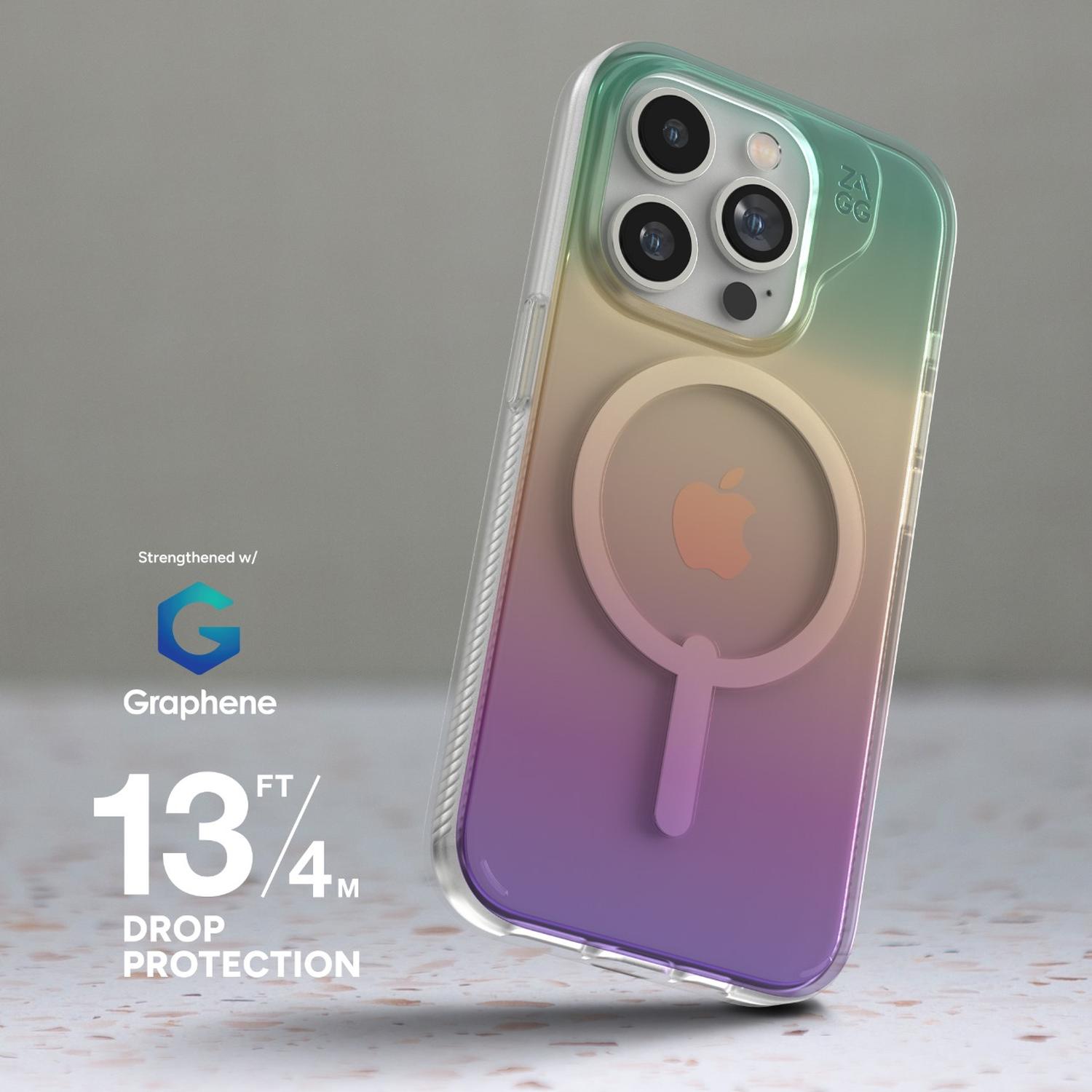 Tu celular es una obra de arte, tu funda también debe serlo. El Milan Snap no solo protege; sino que realza la belleza de tu dispositivo. Esta funda compatible con MagSafe está reforzada con grafeno, uno de los materiales más resistentes del mundo. Milan Snap proporciona hasta 4 metros de protección contra caídas . Su superficie brillante y semitransparente tiene un diseño sutil inspirado en la naturaleza que complementa las líneas elegantes de su celular. Con Milan Snap, tu teléfono siempre está listo para salir.Características:Protección Contra Caídas de 4 m: ha sido testeado y probado para proteger tu teléfono contra caídas de 4 metros . Reforzado con Grafeno: el grafeno es más duro que un diamante, pero más elástico que el caucho, y hasta 200 veces más fuerte que el acero.Diseño Inspirado la Naturaleza: las fundas Milan Snap tienen un hermoso acabado semitransparente con imágenes inspiradas en el mundo natural.Compatible con MagSafe: esta funda es compatible con MagSafe y funciona con la mayoría de los cargadores compatibles inalámbricos. 74% de Contenidos Reciclados : esta funda contiene hasta un 74% de productos reciclados post-consumo.Diseño Delgado y Liviano: el diseño delgado y liviano cabe fácilmente en tu bolsillo y cómodamente en tu mano. Tratamiento Antimicrobiano: contiene un agente antimicrobiano con propiedades intrínsecas para proteger tu funda al inhibir el crecimiento de bacterias que producen malos olores .Mil Std 810G 516.El contenido de material reciclado es verificado por un tercero independiente.Contiene un agente antimicrobiano con propiedades intrínsecas para proteger tu funda al inhibir el crecimiento de bacterias que causan malos olores y proteger contra la degradación de microorganismos.Nivel de Protección: Protección contra caídas de hasta 4 metros de alturaCompatible con: iPhone 15 Pro MaxDiseño de la funda: Delgado y livianoColor: IrisdiscenteMaterial: Grafeno, Polímero, Policarbonato, TPU (poliuretano termoplástico) y Materiales Reciclados.Tamaño de la Pantalla: 6.7" |