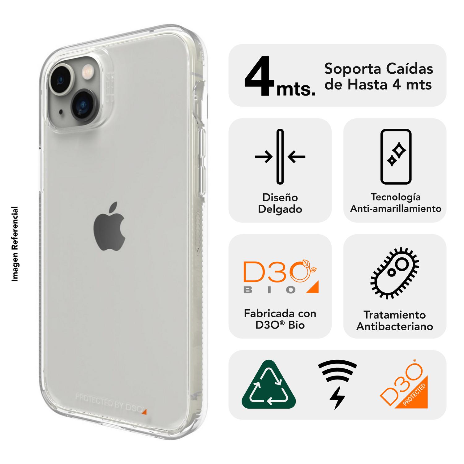 Protege tu celular contra caídas de hasta 4 metros, está fabricada con el material D3O® Crystalex y Tritan™ Renew, contenido reciclado 50% certificado. Es compatible con carga inalámbrica y, además, contiene un agente antibacteriano con propiedades intrínsecas que protegen tu funda. Diseñado para iPhone 14 Plus.