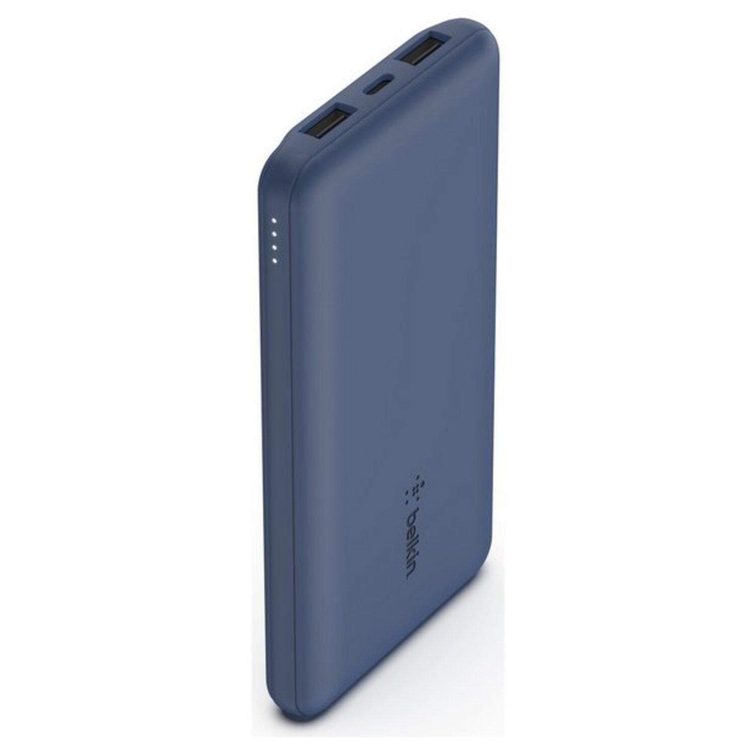 Carga 3 dispositivos a la vez con la batería portátil de Belkin, dos puertos USB-A y un puerto USB-C mantienen todos tus dispositivos cargados, brindando hasta 15 W de energía para tu teléfono inteligente y otros dos accesorios. Carga hasta 15 W compartidos cuando usas los 3 puertos. Ve películas, haz videollamadas y mantén tus aplicaciones de navegación funcionando hasta tu destino.Una luz LED indica cuándo es necesario recargar el banco de energía, y el cable USB-A a USB-C incluido te permite comenzar a cargar nada más, sacarlo de la caja y recargar tu banco de energía cuando sea necesario.Mantienen todos sus dispositivos alimentados con hasta 40 horas de duración de la batería para su teléfono inteligente y dispositivos inteligentes, los puertos USB-A y el puerto USB-C te darán 15W si los usas de manera individual o carga tres dispositivos al mismo tiempo compartiendo 15W de carga, su tamaño compacto te permite llevarla a todas partes.Características:• Color: Azul• Compatible con cualquier dispositivo que cargue con USB-A o USB-C• Material: Plástico• Producto elaborado con plástico reciclado• Envases 100% libres de plástico• Potencia de carga:Entrada:• USB-C = 5V/3A (15W max)Salida:• USB-C = 5V/3A (15W max)• USB-A #1 = 5V/2.4A (15W max)• USB A #2 = 5V/2.4A (15W max)El paquete incluye:• Batería de 10,000 mAh• Cable USB-A a USB-C de 15 cm |