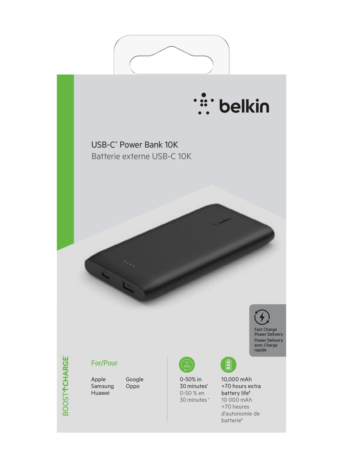 USB-C 10k Portable Battery with BOOST↑CHARGE™" USB-C Cable This USB-C 10K Power Bank offers an 18W USB-C output with Power Delivery, so you can quickly charge your compatible device, and a 12W USB-A output to simultaneously charge a second device. Compatible with iPhone 15/14/13/12 series. Our USB-C Power Bank 10K offers 10,000 mAh to provide up to an additional 36 hours of battery life to your smartphone. You can use the USB-C port to quickly charge a phone while using the USB-A port to charge a tablet, camera, or other device at the same time. Characteristics: 10,000 mAh Two ports: 18W USB-C and 12W USB-A USB-C Power Delivery 6-inch/152.4mm USB-C to USB-C cable included Packaging content: USB-C 10K Power Bank 15cm USB-C to USB-C cable. Specifications: Length: 14.34cm Height: 7.46cm Width: 1.65cm Input: Up to 18W max. USB-C 5V/3A/15W 9V/2A/18W 12V/1.5A/18W 15V/1.2A/18W Output: Up to 18W max. (combined) USB-A 5V/2.4A/12W when USB-C port not used 5V/1A/5W when using USB-C port USB-C 5V/3A/15W 9V/2A/18W 12V/1.5A/18W 15V/1.2A/18W |
