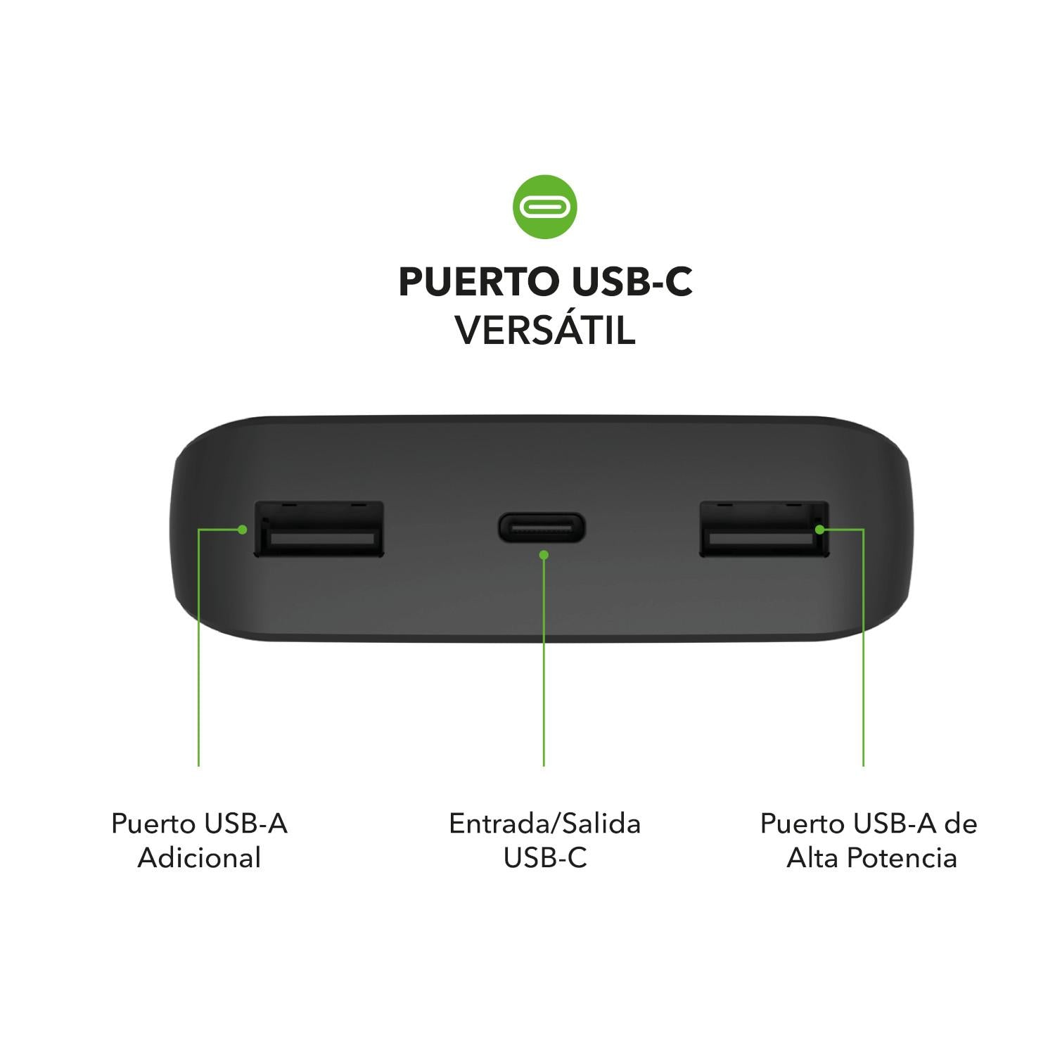 With a large internal battery and a versatile USB-C port, the new Power Boost portable battery keeps your smartphone charged all day. This elegant battery offers up to 4 full charges for your cell phone! Characteristics: It contains a 20,000mAh internal battery: it gives you up to 4 full cell phone charges. Charge Multiple Devices: Charge up to three devices thanks to the USB-C and USB-A ports. Includes USB-C input/output plus two USB-A ports. Versatile USB-C Port: Use the USB-C port to recharge the power boost in record time or use the same port to charge a device. Up to 4.8 full charges for your cell phone: face the day without problems, our power boost gives you enough power to charge your smartphone several times. LED Charging Indicator: Built-in four-light LED charging indicator shows charging status and current battery life. Compact and Convenient: Its compact design fits comfortably in your bag. Specifications: Contents: 1 power boost XL Battery, 1 Charging Cable (USB-A to USB-C), 1 Quick Start Guide Compatibility: Smartphones, tablets and USB-C and USB-A devices Cable length: 30 cm |