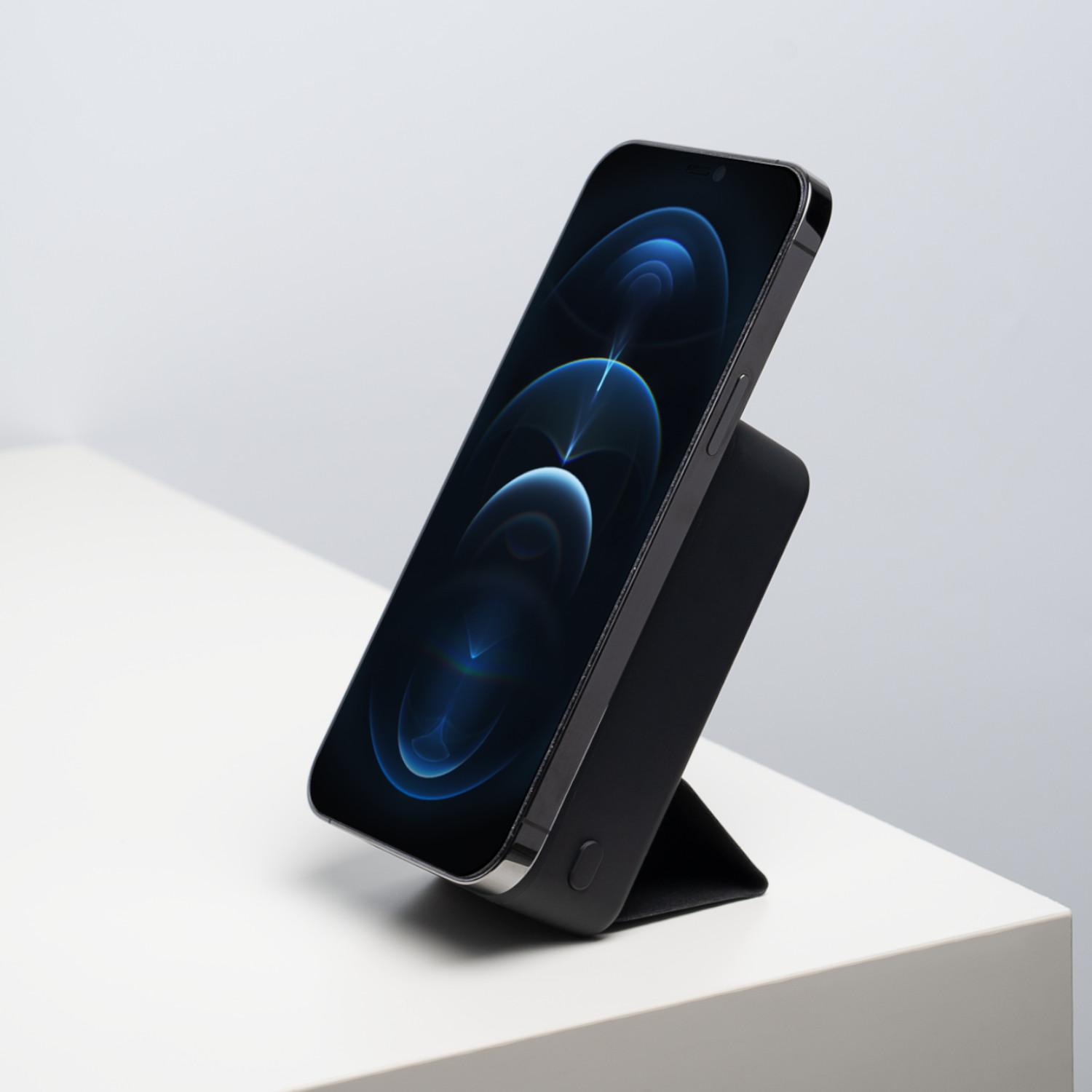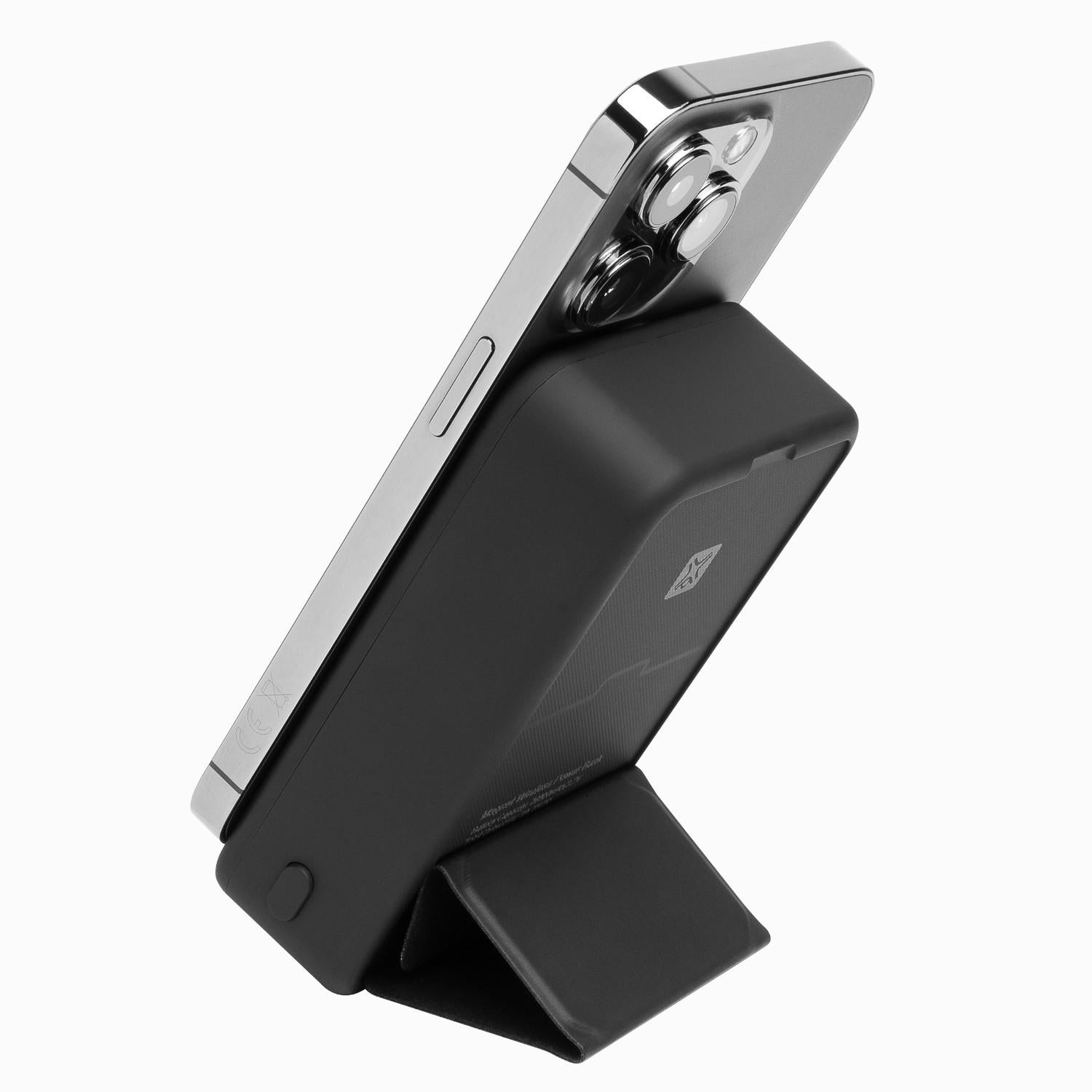 A detachable support shaft on the back of the powerbank allows you to keep your iPhone in the docked position to keep it visible horizontally or vertically while charging.