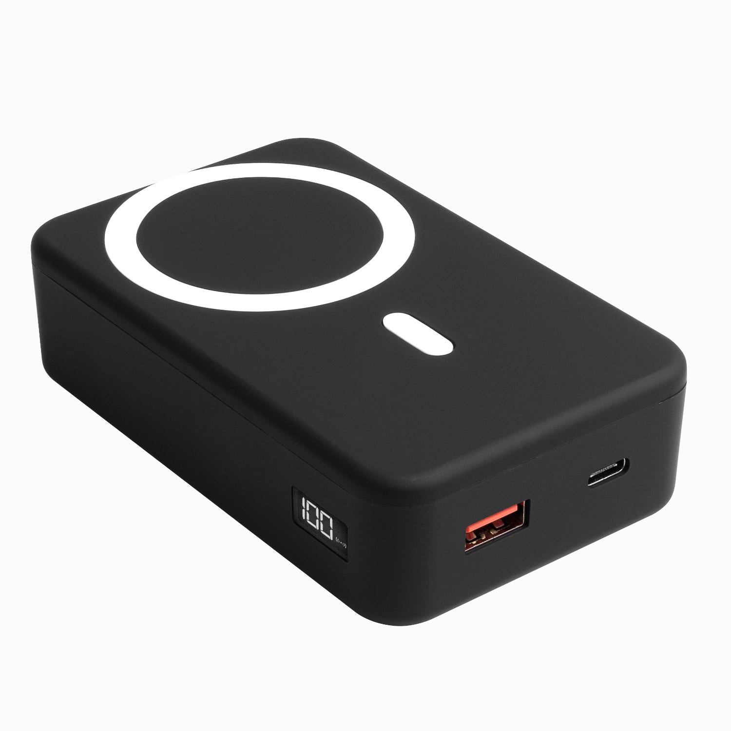 Wireless 20000 Battery Color Black Quickly charge your iPhone wirelessly with the XtremeMac powerbank. The high capacity of 20,000 mAh allows you to recharge: All iPhone 15, 14 and 13 Pro Max models => 2 to 3 times iPhone 13 and 13 Pro => 3 to 4 times iPhone 13 mini and all iPhone 12 models => 4 times Simply magnetically attach the powerbank to the back of your iPhone and charging will begin immediately, while the powerbank remains firmly attached to your phone. Use the additional USB-C and USB-A ports to charge any other compatible devices with a cable. A detachable support shaft on the back of the powerbank allows you to keep your iPhone in the docked position to keep it visible horizontally or vertically while charging. Characteristics: MagSafe Compatible: Strong magnetic attachment. 20,000 mAh capacity => Recharge your iPhone 4 to 8 times. USB-C and USB-A ports. Fast charging: Maximum 15 W wirelessly Maximum 20 W wired. It can charge 3 devices simultaneously. Support shaft to keep iPhone in docking position while charging. COMPATIBILITY: iPhone 15, 15 pro, 15 pro Max. iPhone 14, 14 pro, 14 pro Max. iPhone 13, 13 pro, 13 pro Max, 13 mini. iPhone 12, 12 pro, 12 pro Max, 12 mini. Any device compatible with USB-C AND USB-A Inlet/outlet size: 9.2 cm *6.2 cm *1.4 cm |