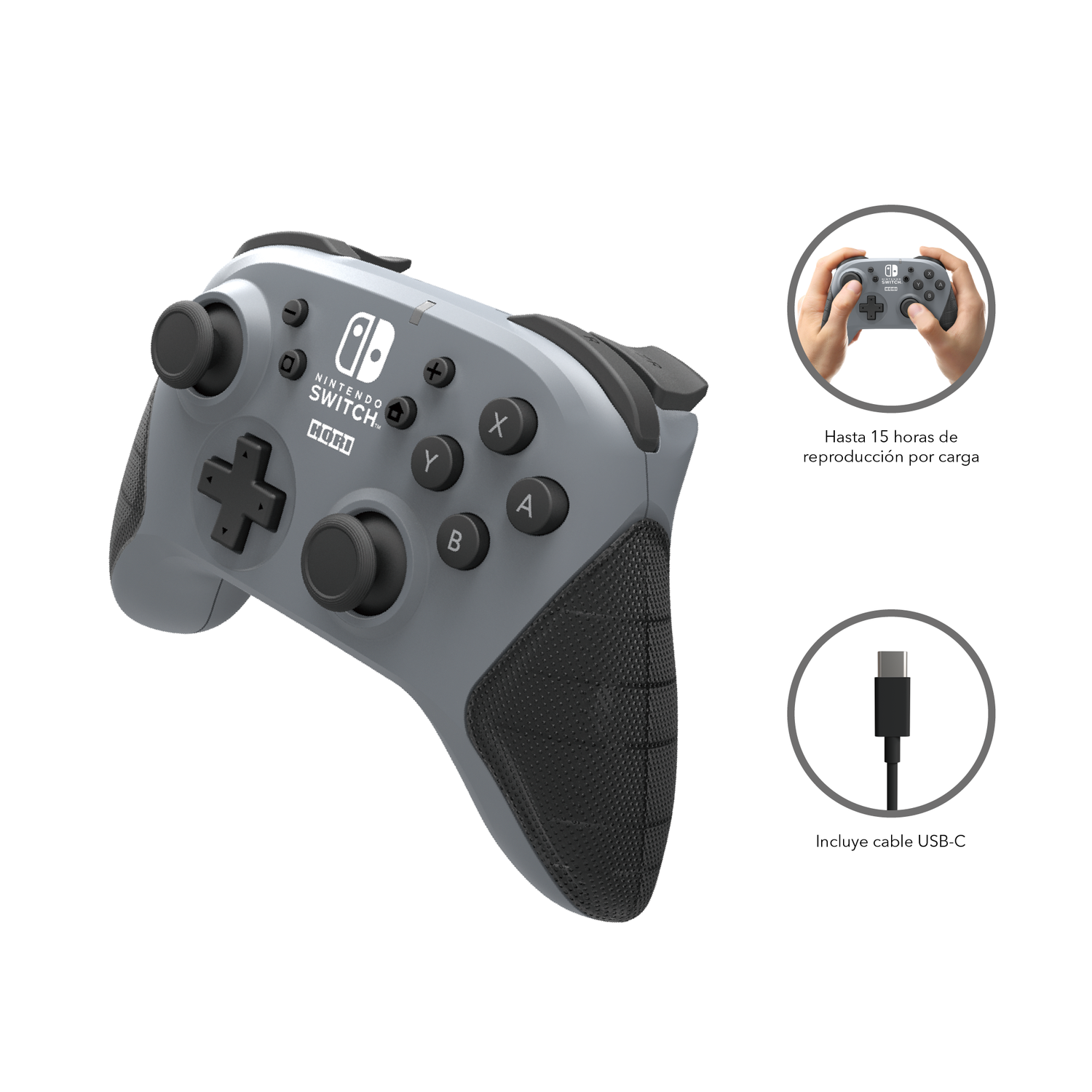 ¡Ya no te quedes atado a cables y pilas desechables! Hori ofrece lo mejor con el HORIPAD inalámbrico de Nintendo Switch. La batería recargable de iones de litio incorporada y la tecnología inalámbrica Bluetooth le brindan libertad con un alcance de 10 metros y más de 15 horas de duración de la batería. Ligero pero sólido, el HORIPAD inalámbrico ágil y receptivo está equipado con un acelerómetro y giroscopio para un control total del movimiento, lo que lo convierte en la opción preferida para los jugadores de Nintendo Switch.Se carga con el cable USB-C incluido. Características:Asegúrate de que tu Nintendo Switch cuenta con la última versión del firmwaredel sistema.Controlador inalámbrico Bluetooth con alcance de 10 metrosNo compatible con PCBatería recargable con hasta 15 horas de reproducción por cargaLigero y ergonómicoAcelerómetro y giroscopio para control total del movimientoCon licencia oficial de NintendoEste producto no incluye las siguientes características: Cámara infrarroja de movimiento, vibración HD, NFC.Este producto es un controlador inalámbrico y no funcionará cuando el cable esté conectado.Contenido: Controlador × 1, Cable USB (Tipo C) ×1, Manual de instrucciones ×1Compatibilidad:Nintendo SwitchEspecificaciones:Dimensiones : 162 × 58 × 108 mm (largo × ancho × alto)Peso : 170 gSensores : Acelerómetro / giroscopioMétodo de conexión : Bluetooth® 5.0