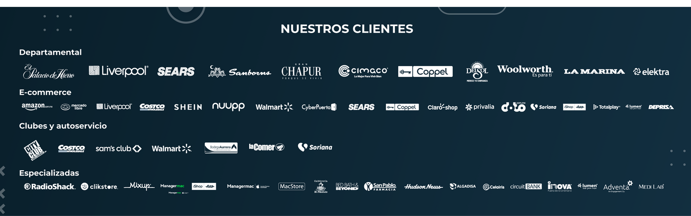 Ofrecemos una amplia gama de accesorios y electrónicos, orientados a facilitar la vida diaria de los consumidores, con marcas que generen lealtad y valor para nuestros clientes, al mismo tiempo, fomentamos la superación de nuestros colaboradores, garantizando así un servicio profesional y de calidad.