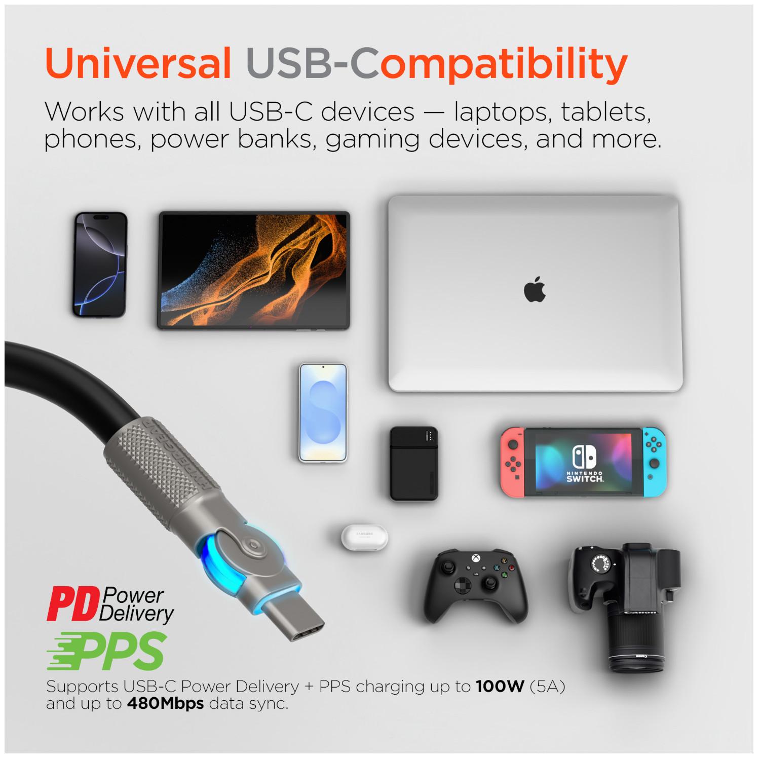 • Funciona con todos los dispositivos USB-C: teléfonos, tabletas, portátiles y más
