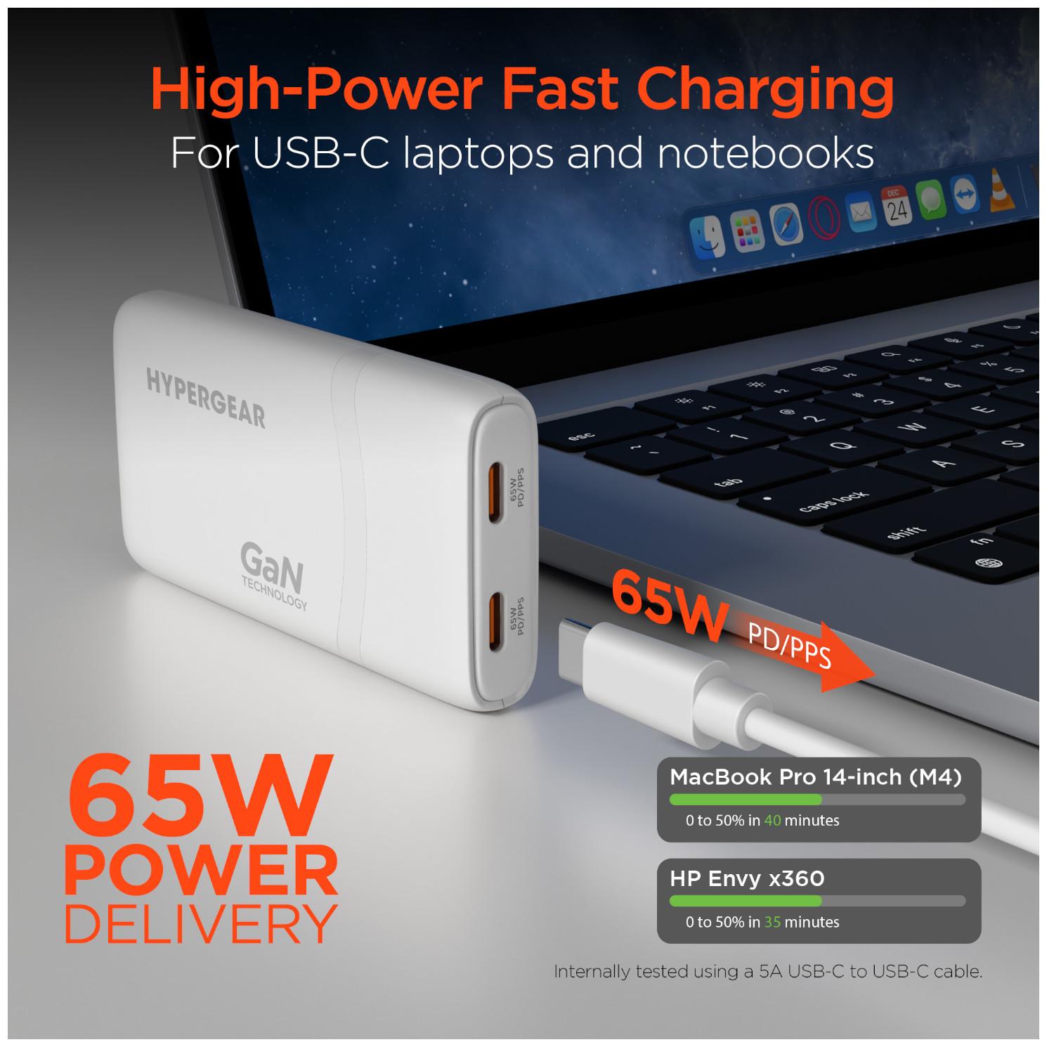 Hypergear Cargador de Pared Blanco 65W SpeedBoost Compacto