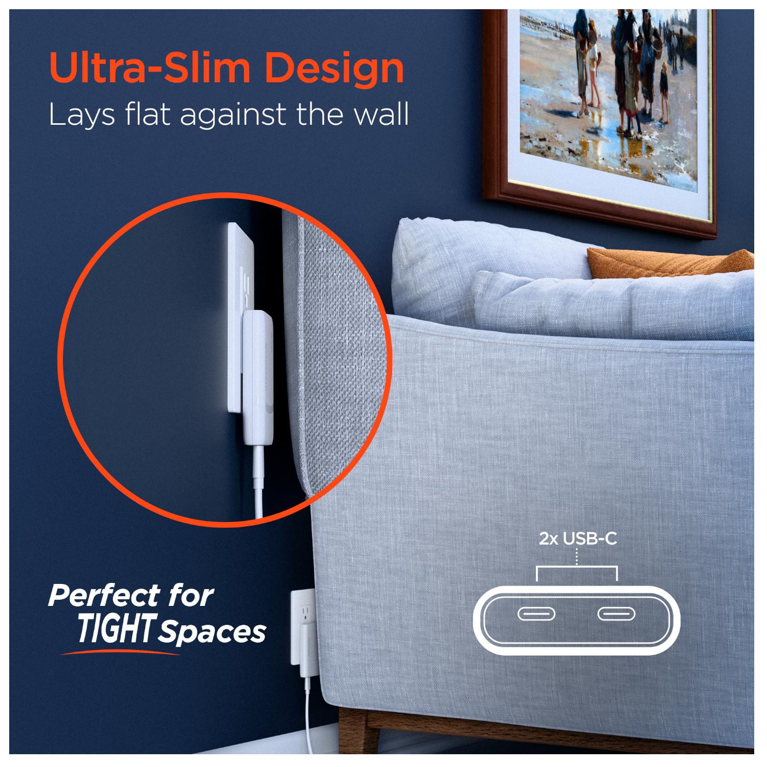 Adelgaza. Potencia. Con solo 0,59 pulgadas de grosor, el cargador SpeedBoost 65W Ultra-Slim GaN está diseñado para quedarse plano contra el enchufe de la pared, para que puedas colocarlo detrás de los muebles o en cualquier otro espacio reducido. Diseñado con un chipset de nitruro de galio (GaN) de nueva generación, es un 64% más pequeño que un cargador original de MacBook Pro, pero sigue siendo igual de potente. Lleva un MacBook Pro de 14 pulgadas de 0 a 50% en solo 40 minutos con hasta 65W de salida de alimentación USB-C desde un solo puerto, o carga dos dispositivos uno al lado del otro con hasta 45W y hasta 12W cada uno. Ultrafina, ultraligera y construida con púas plegables, puedes meterla fácilmente en una bolsa o maleta sin añadir volumen, lo que la hace tan útil para llevar como en casa. Características especiales: • Perfil ultra-delgado diseñado para acomodarse en espacios reducidos • Diseñado con tecnología GaN – 64% más pequeño que un cargador original del MacBook Pro • Carga rápida de 2 dispositivos a la vez • Carga de alta potencia para portátiles MacBook Pro/Air y Windows • Carga súper rápida para iPhone y teléfonos Android • Carga rápida para iPad y tabletas Android/ Windows • Soporta carga súper rápida Samsung • Entrega de potencia USB-C de 65W con PPS • 45W + 12W Salida USB-C Dual • Compatibilidad universal • Características de seguridad SmartChip • Ligero y ultraportátil • Puntas plegables • Listo para viajar internacionalmente • Embalaje de bajo contenido plástico Especificaciones: • Entrada AC: 110-240V∿50/60Hz, 1,3A • Salida máxima: 65W • PD USB-C1/2: 5V⎓3A / 9V⎓3A / 12V⎓3A / 15V⎓3A / 20V⎓3A (65W máx) • USB-C1/2 PPS: 5-20V⎓3A (60W máx.) • Salida compartida: 45W + 12W (PPS C1: 5-11V⎓3A) • Protección: Cortocircuito/sobrecarga • 1,79 x 3,38 x 0,59 in | 2,98 oz |